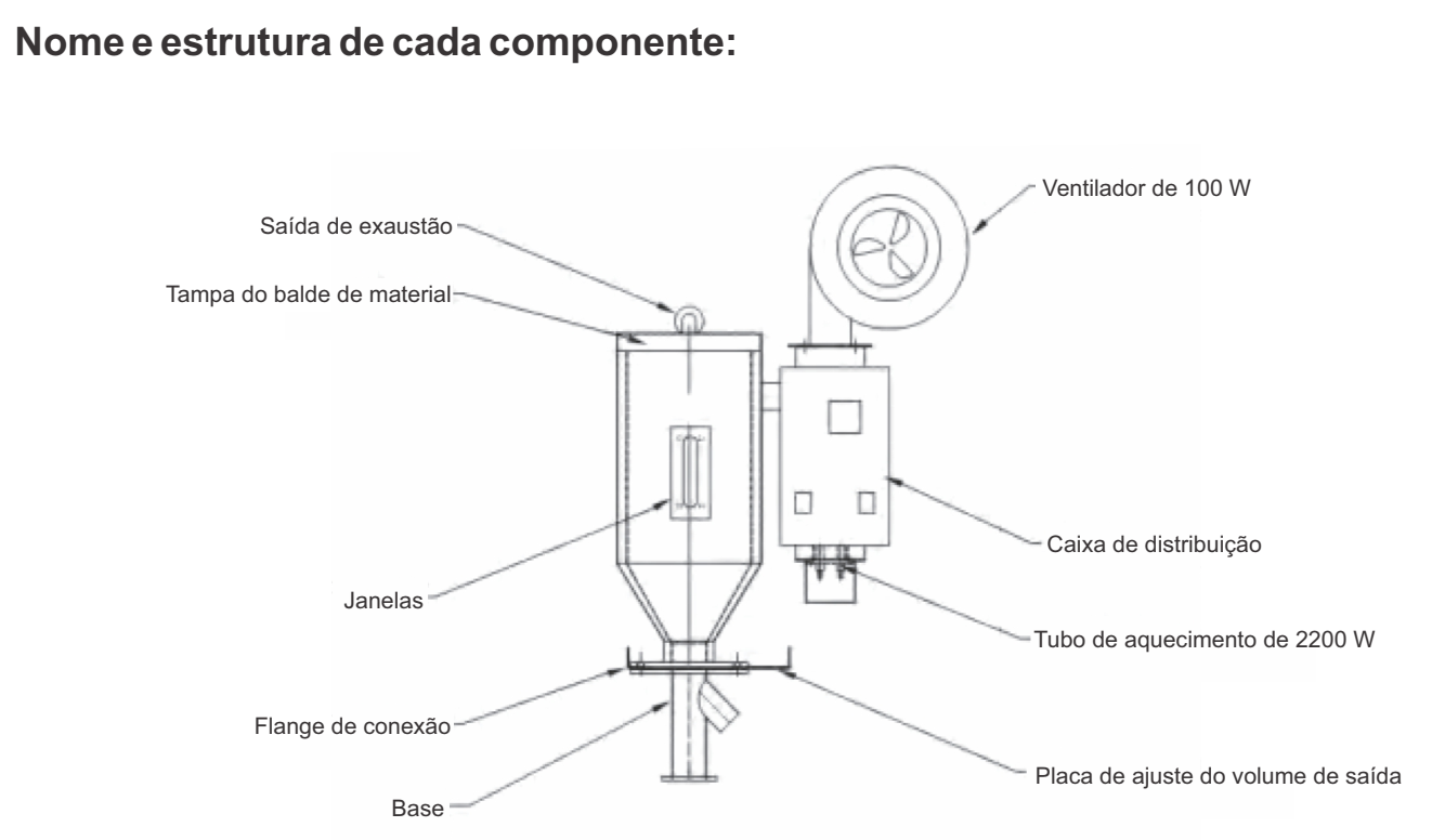 Método de seleção: quantidade de injeção por hora x 2,5 = quantidade de carga do secador.
