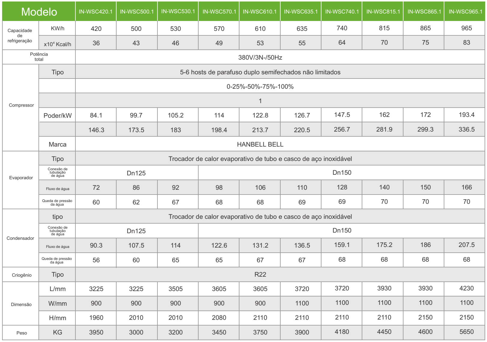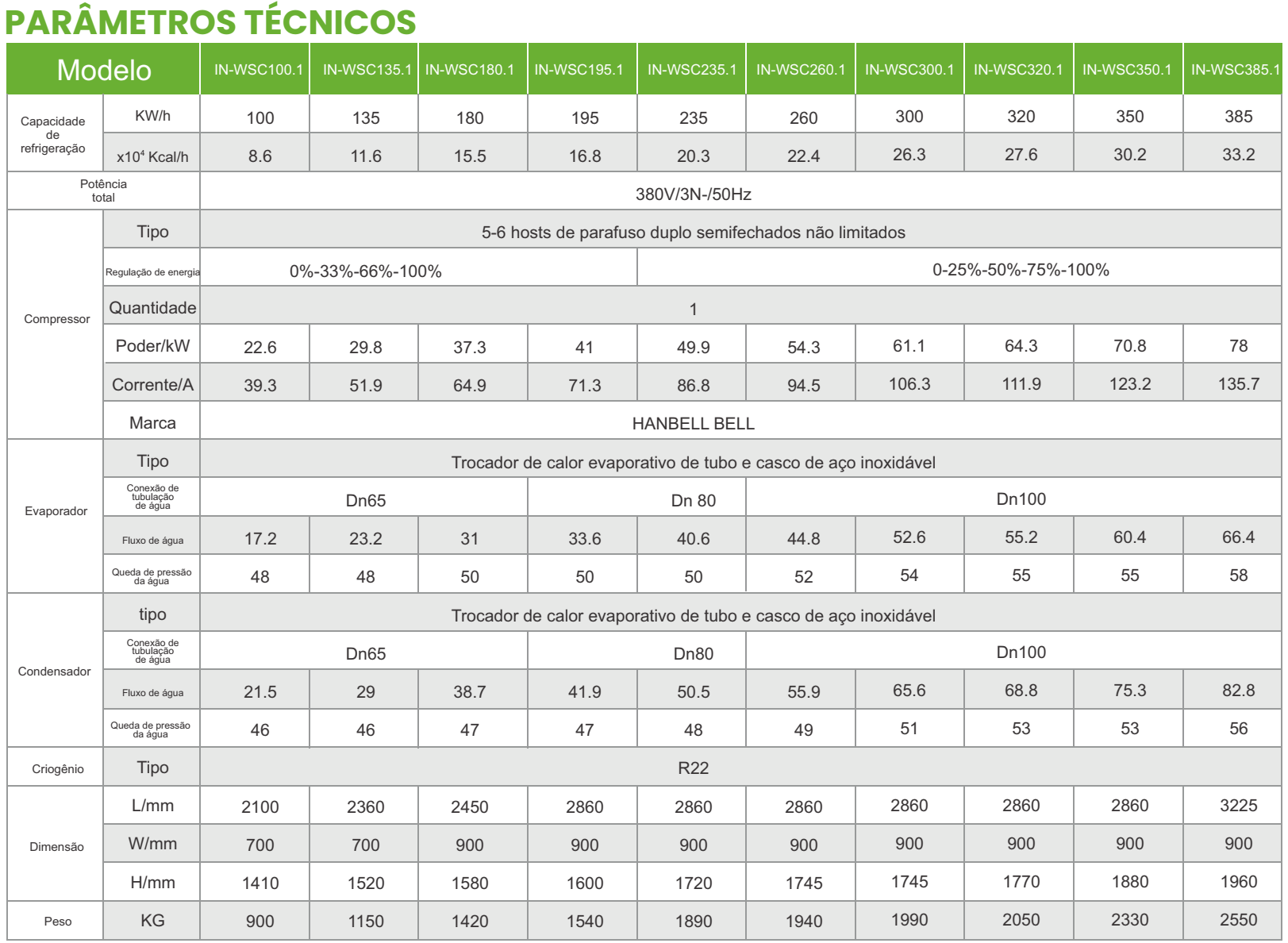 - A unidade de parafuso utiliza o compressor especial de parafuso duplo assimétrico